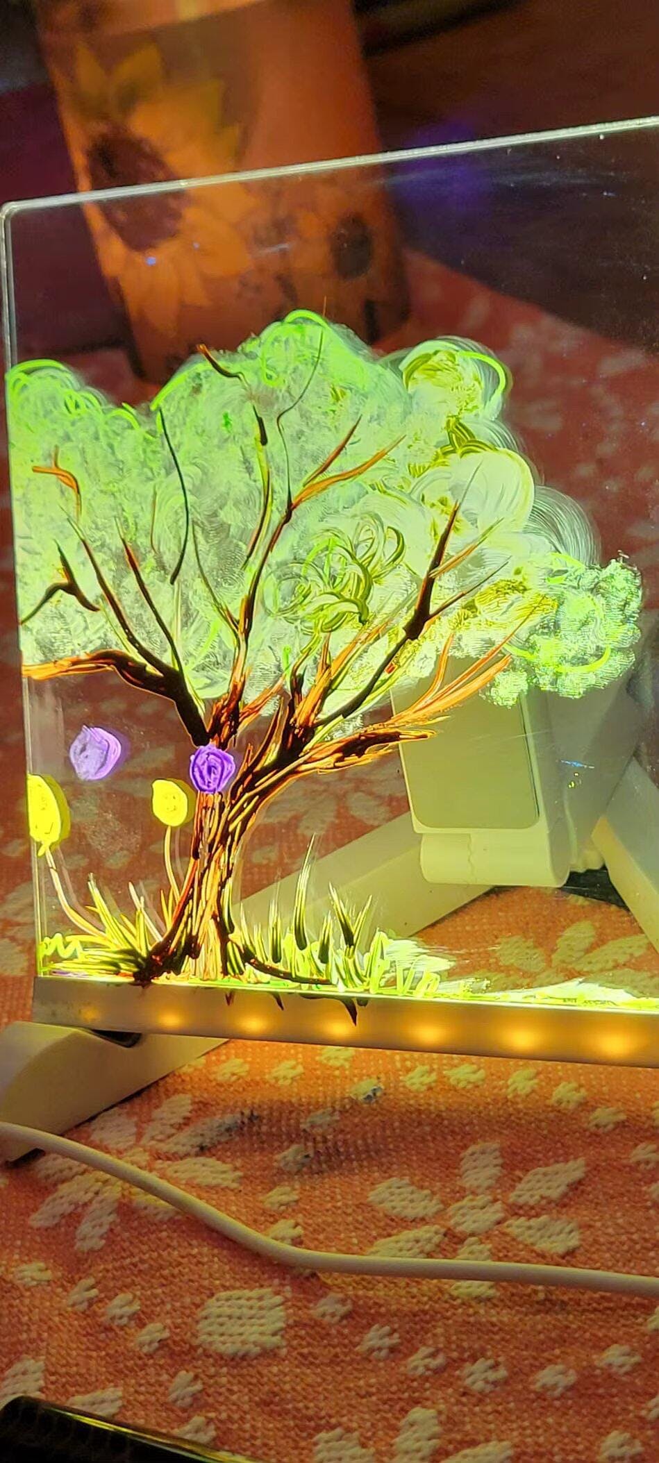 Le rendu lumineux est top ! Ça fait une belle déco dans la chambre de mon fils le soir. Les stylos colorés sont bien visibles même sans la lumière.